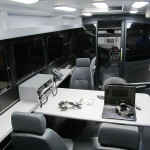 O interior da unidade móvel da Força Nacional é composto por equipamentos de última geração, incluindo câmeras de monitoramento interno, computadores de bordo, sistema de
